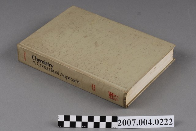 本物件為Charles E. Mortimer著《化學》第4版。外封為灰色,封面與封底無任何文字描述,扉頁部分有「CHEMISTRY」、「A Conceptual Approach」字樣,內容可見分為Introduction、Atomic Structure、Chemical Bonding、Molecular Geometry、Chemical Equations and Quantitative Relations等,共有21個章節。