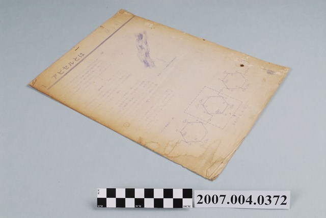 本物件為「アビセルとは」腸溶劑相關文件,為幾頁紙張所組成,紙張上已有些微泛黃,且印刷的墨水已有些淡掉難以辨認,內容分別為「アビセルとは」、「アビセルの性質」、「アビセルの特性と用途」。