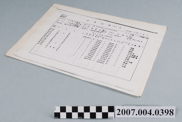 本物件為三和藥廠十八銅人補腎丸文件。此為十八銅人補腎丸的生產記錄表,列有原料品名、原料規格、原料含量等欄位,原料有人參、甘草、茯苓、木香、當歸等。記錄時間為民國56年(1967)12月5日。