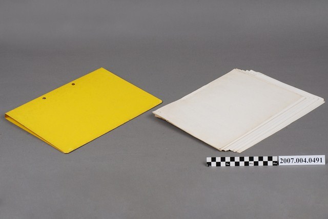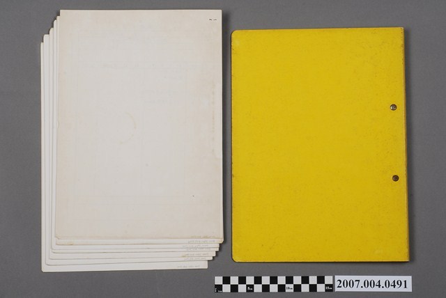 本物件為三和藥廠包裝材料規格文檔2。共有9項文件,夾在黃色資料夾中。資料夾寫有包裝材料規格字樣。文件中紀年為民國。