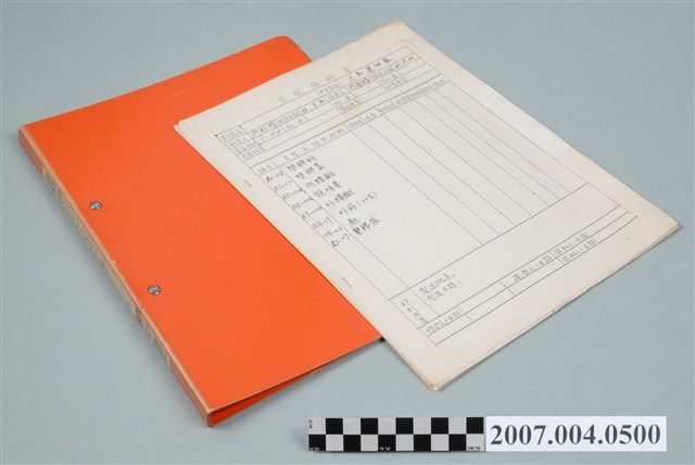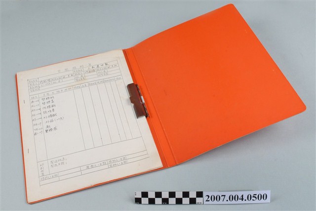 本物件為三和藥廠中藥包裝領料單文檔。文件夾於紅橘色資料夾中,文件首頁為三和運功散之包裝領料單,制定人和核定人欄位分別為許敏珠和許敏娟,制定日期和核定日期皆為75.9.30,此應為民國紀年。包裝材料有塑膠頭、 塑膠蓋、內標籤、說明書、外標籤、外箱、匙、塑膠袋。