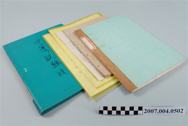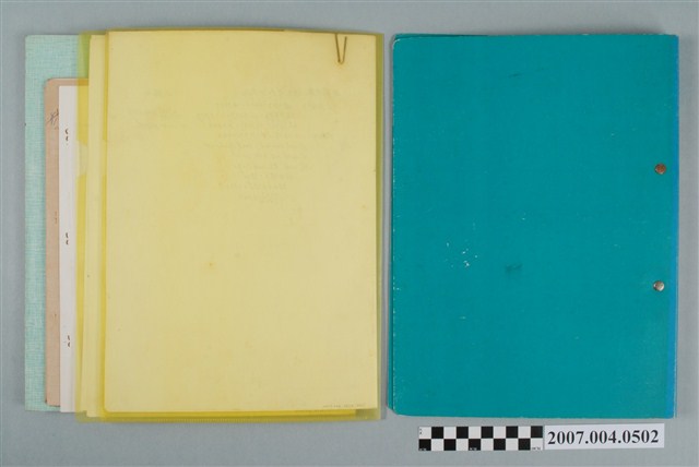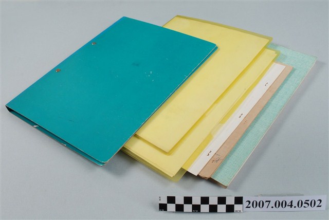 本物件為三和藥廠中藥試驗法文檔。共有5項文件,夾在藍色資料夾中,資料夾封面有手寫之中藥試驗法字樣。