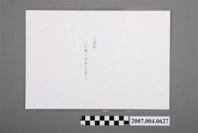 1. 本物件為陳拱北攜外賓參觀公共衛生教學示範中心門診部。黑白照片中有11人,有小孩與大人,門診室中有一張桌子,陳拱北指著桌子上的一個東西向一位外國人解說。照片背面有字,公園路、公共衛生教學示範中心。
