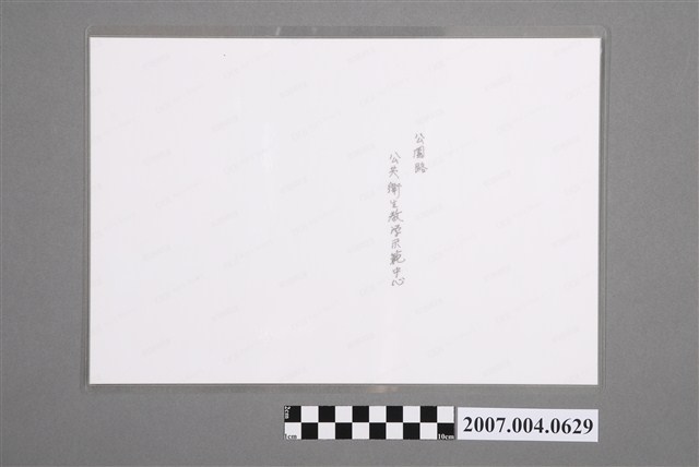 1. 本物件為外賓參訪公共衛生教學示範中心剪影。黑白照片中可見眾人圍著會議桌,陳拱北在發言,眾人看著他。牆上有蔣中正照片。照片背面有字,公園路、公共衛生教學示範中心。