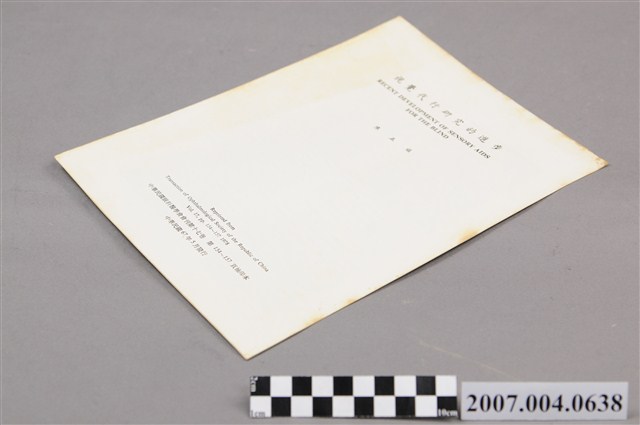 陳五福著〈視覺代行研究的進步〉,為中華民國眼科醫學會會刊第十七卷第154-157頁抽印本,發行於民國67年5月,內容主要討論一些對於替代盲人視覺的新式機器,如盲人閱讀機、觸覺電視機等,封底空白無圖案,有泛黃痕跡。