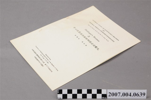 陳五福與林清助著〈Behcet氏病─四例報告〉,為中華民國眼科醫學會會刊第十九卷第71-75頁抽印本,發行於民國61年5月,內容主要討論一種稱為Haidinger's Brushes得視覺檢測方式,用於中心性漿液性脈絡網膜症上的變化,封底空白無圖案,有泛黃痕跡。