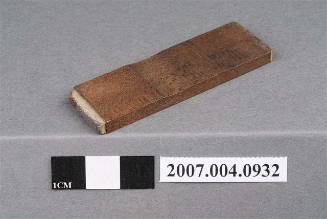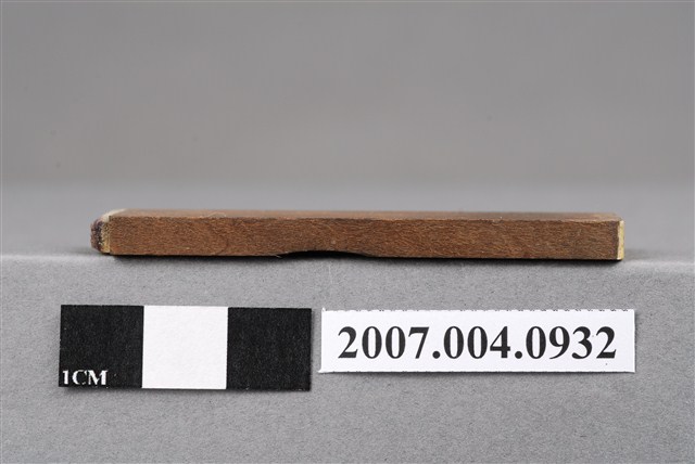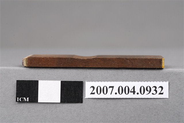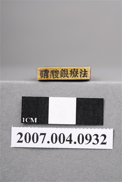 本物件為硝酸銀療法印章,該只印章由木頭製成,呈長方形,中間部分略有凹陷以方便拿取使用,印章尾端寫有「硝酸銀療法」五字以供辨識,前端部分保持乾淨,較無使用過的藍色印泥痕跡,整體保持完整。硝酸銀,牙科補銀粉的成分。