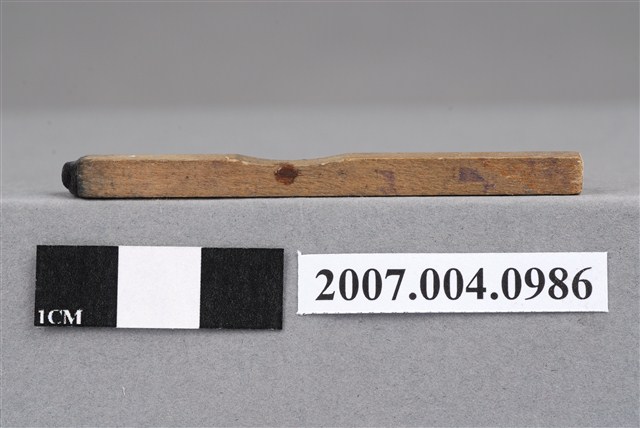 本物件為C印章,長方體狀,木質材質。該印章刻字處同為木質,刻有「C」字樣,雕刻方式為陽刻,有使用痕跡。