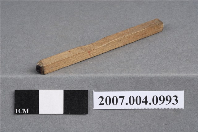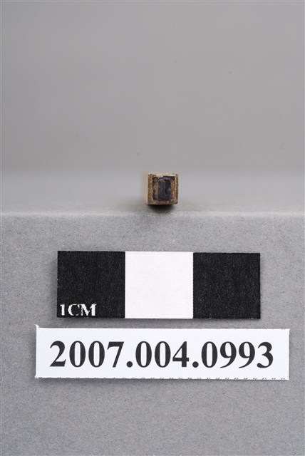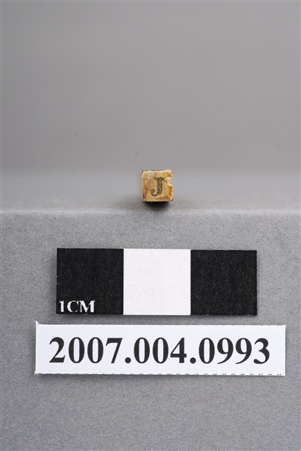 本物件為J印章,長方體狀,木質材質。該印章刻字處同為木質,刻有「J」字樣,雕刻方式為陽刻,有使用痕跡。