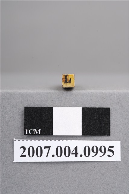 本物件為L印章,長方體狀,木質材質。該印章刻字處同為木質,刻有「L」字樣,雕刻方式為陽刻,有使用痕跡。