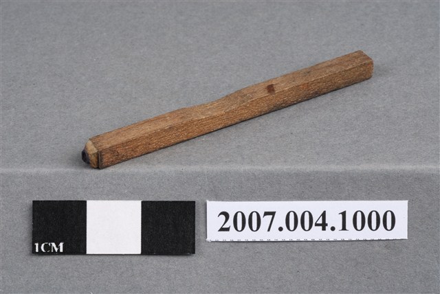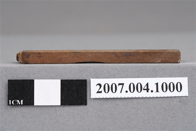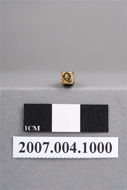 本物件為Q印章,長方體狀,木質材質。該印章刻字處同為木質,刻有「Q」字樣,雕刻方式為陽刻,有使用痕跡。