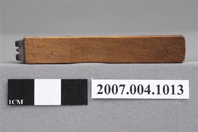 本物件為C.S印章,長方體狀,木質材質。該印章刻字處同為木質,刻有「C.S」字樣,雕刻方式為陽刻,有使用痕跡。