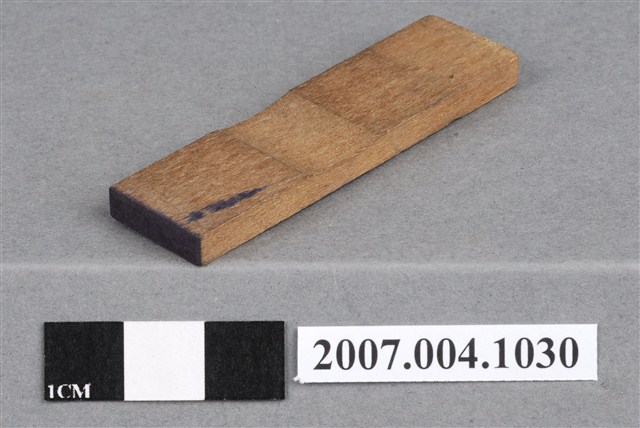 本物件為CHANGE印章,長方體狀,木質材質。該印章刻字處同為木質,但前端已掉落,另一端印刷字樣看得出為「CHANGE」字樣,側邊有黑色手寫「交換」字樣。