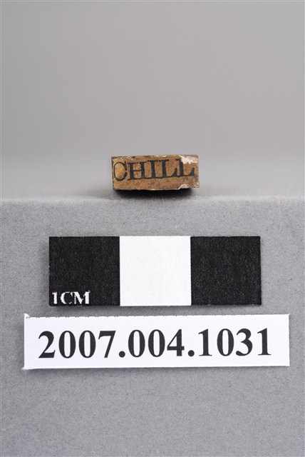 本物件為CHILL印章,長方體狀,木質材質。該印章刻字處同為木質,刻有「CHILL」字樣,雕刻方式為陽刻,有使用痕跡,側邊有黑色手寫「惡寒」字樣。