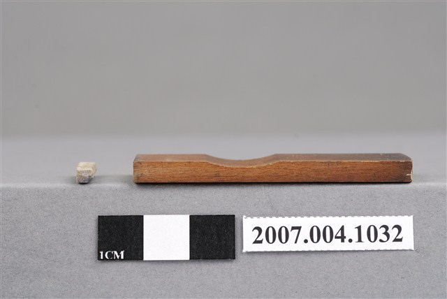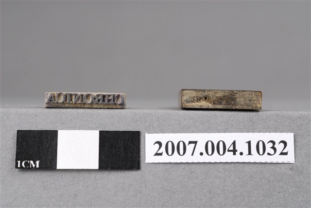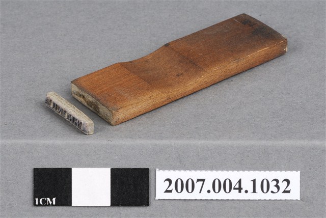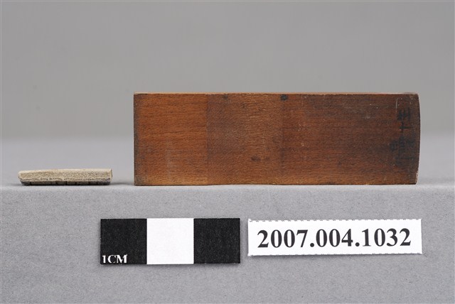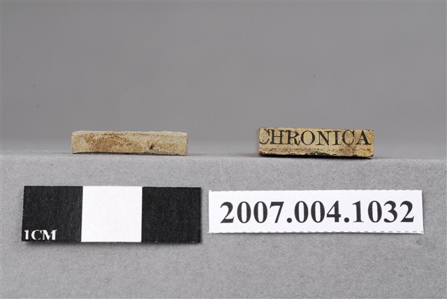 本物件為CHRONICA印章,長方體狀,木質材質。該印章刻字處掉落,同為木質,刻有「CHRONICA」字樣,雕刻方式為陽刻,有使用痕跡,側邊有黑色手寫「慢性」字樣。