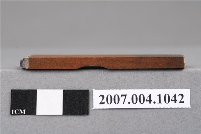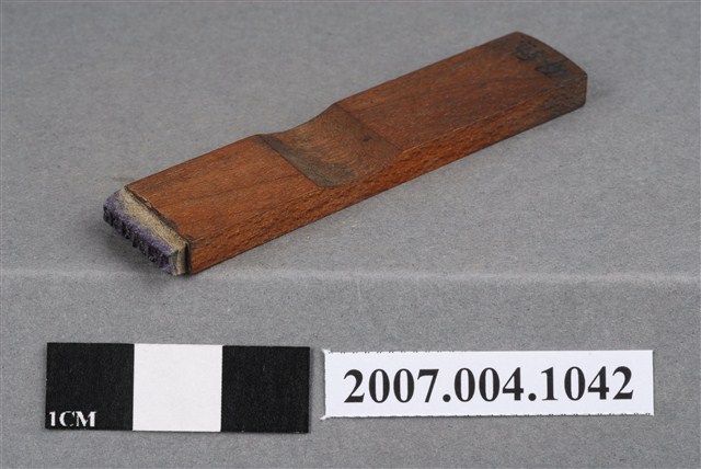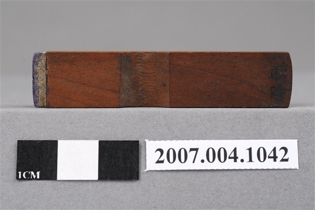 本物件為FEVER印章,長方體狀,木質材質。該印章刻字處同為木質,刻有「FEVER」字樣,雕刻方式為陽刻,有使用痕跡,側邊有黑色手寫字樣但模糊不清。「FEVER」有發燒、發熱之意。