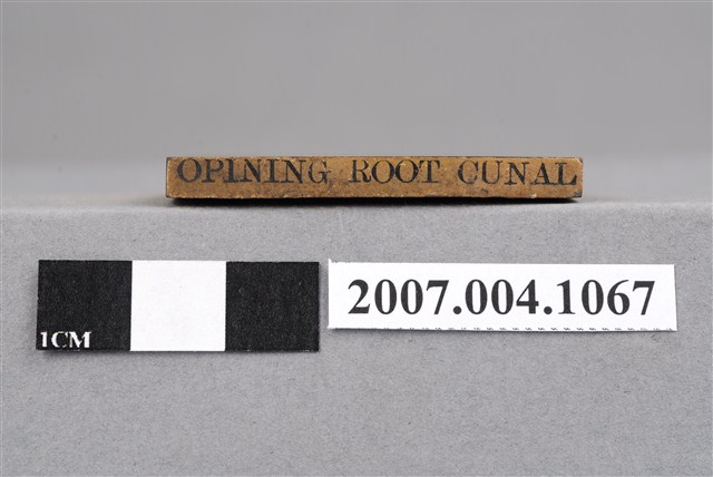 本物件為OPINING ROOT CUNAL印章,長方體狀,木質材質。該印章刻字處同為木質,刻有「OPINING ROOT CUNAL」字樣,雕刻方式為陽刻,有使用痕跡,側邊有黑色手寫「根□開放」。