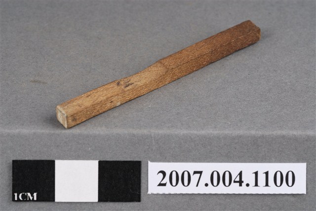 本物件為2印章,長方體狀,木質材質。該印章刻字處已掉落,另一端印刷字樣看出為「2」。