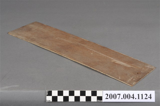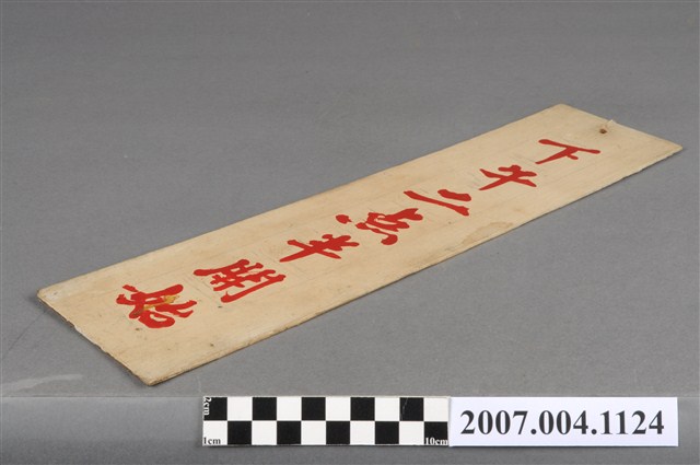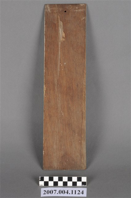 本物件為看診時間掛牌,材質為木質,形狀為長方形,掛牌正面印有紅色「下午2點半開始」之字樣,且掛牌上留有裝訂痕跡;掛牌背面有磨損痕跡。