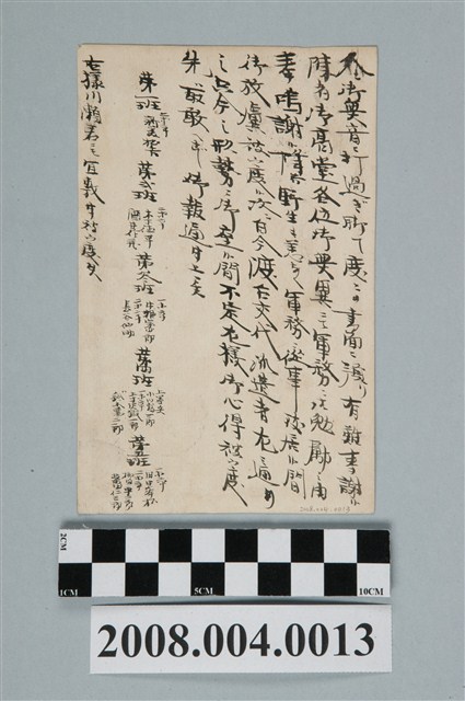 山本長次郎寄臺灣守備步兵第參大隊第參中隊高橋□明信片