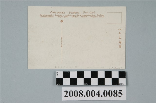 1. 本物件為以臺灣農業為主題的明信片。正面為農夫正在使用打穀機將稻粒從稻桿上分離。田地上有許多堆疊成堆的稻子。下方印「臺灣農夫稻之收穫」、「K53 Rice Crop at Formosa.」。背面為書寫面,右上角為郵票黏貼處,右側印「郵便はかき」。上方印「Carte postale-Postkarte-Post Card」、「Cartolina postale-Dopisnice-Levelező-Lap-Karta korespondencyjna-Briefkaart」、「Correspondenzkarte-Tarjeta Postal-Brefkort-Brevkort-OTKPbITOE ПИСbMO」。中央偏左有一分隔線,上方有一標記圖案,中間印「MADE IN JAPAN」。