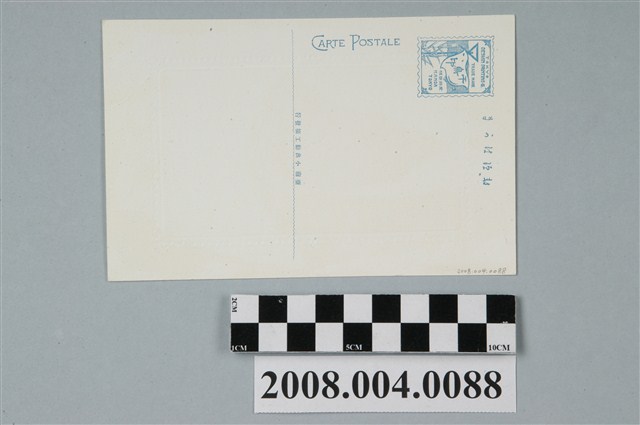 1. 本物件為以臺南郵便局為主題的明信片。正面為臺南郵便局的彩色圖片,入口兩邊各有一座衛塔,牆面上有橫帶裝飾。郵便局前有兩輛馬車,正有行人進出。圖片四周以凸版壓印出花邊。左上方紅字印「THE TAINAN POST OFFICE.」,下方紅字印「臺南郵便局」。背面為書寫面,右上角為郵票黏貼處,內有千鳥印及「TOKYO DESIGN PRINTING CO.」、「TRADE MARK」、「登錄商標」、「KANDA TOKYO」字樣。右側印「郵便はかき」,上方為「CARTE POSTALE」。中間為一波浪形分隔線,中印「臺南小出勸工場發行」。2. 臺南郵便局由建築師森山松之助於西元1909年設計起造,位於今臺南市中西區忠義路與民生路交叉口附近,於1972-1973年遭拆除。3. 森山松之助為日本大阪市出身之建築師,任職臺灣總督府營繕課技師期間,設計監造許多官廳建築,包括臺灣總督府、臺灣總督府專賣局、臺南州廳、臺中州廳、臺北州廳等。
