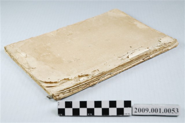 1. 淺黃褐色封皮,封面中央書寫「小日記 娘婿」,為1973-1975年陸季盈教夫人如何書寫日記的練習本。 2. 日記以中日文夾雜書寫,只寫了前半本。此外內頁中夾雜一頁日文片假名書寫之小信籤,以及一張手寫日文漢字練習紙。