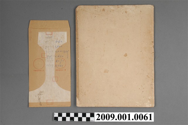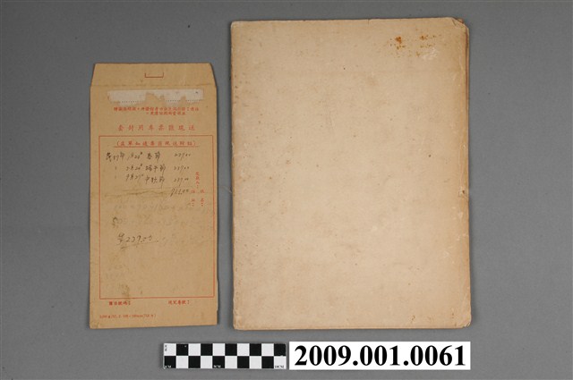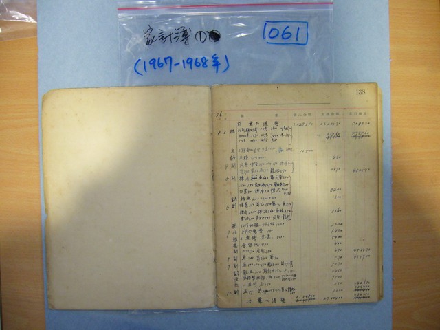 封面無字,內文以中文書寫,記錄收支帳目,封底夾雜一張送現匯票專用封套的空信封。