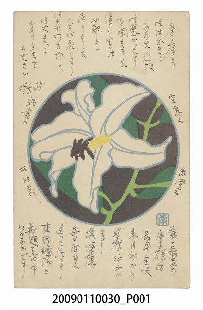 住東京的長澤義郎寫信給淡水稅關長宮尾舜治(生卒年1868-1937,1901/4/15至1906/4/14在任)妻子宮尾豐子(1875年生),信中提及自房子(人名)明信片得知宮尾豐子狀況不太好,寫信問候。