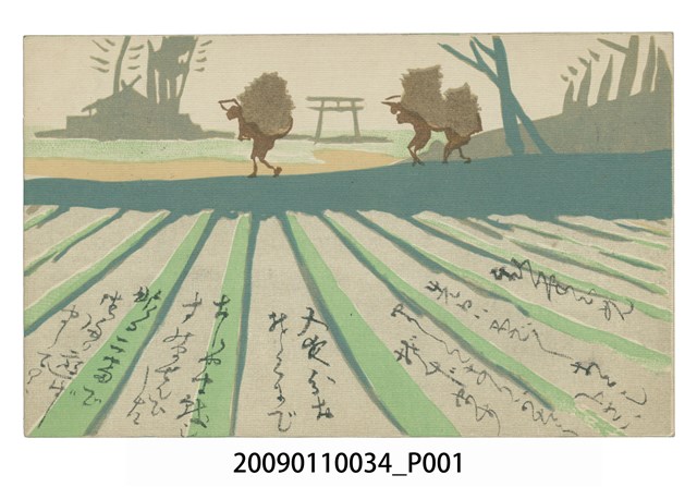黑谷皆好寄與宮尾豐子二人扛稻草田間風光明信片