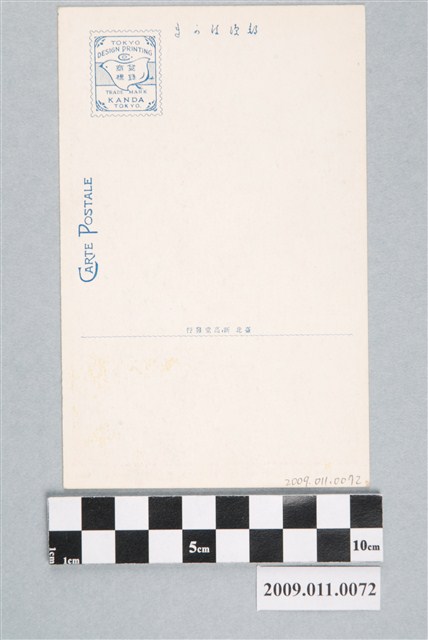 2. 明信片正面底邊印刷文字「『ガオガン』蕃の家族 A FAMILY OF GAOGAN IN FORMOSA」(中譯:)。背面印刷文字「郵便はがき CARTE POSTALE 臺北新高堂發行」,左上角印有一藍色郵票黏貼方框,框內有鳥類圖案,印刷文字「TOKYO DESIGN PRINTING Co.,登錄商標,TRADE MARK,KANDA TOKYO」,其餘空白。
