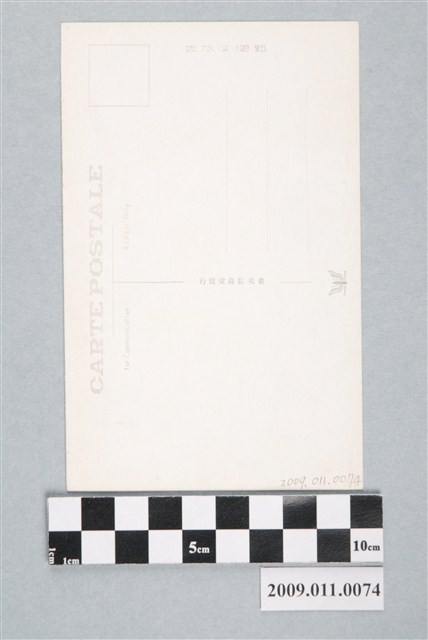 2. 明信片正面右上角印刷文字「新竹州キヨ社蕃人の米搗 RICE-POUNDING OF SAVAGES IN SHINCHIKU PREFECTURE, FORMOSA. (70)」(中譯:新竹州Kiyo社原住民搗米)。背面印刷文字「郵便はがき,CARTE POSTALE,for Com,munication,Address only,臺北新高堂發行」,其餘空白。
