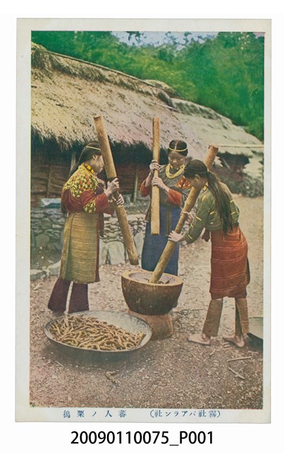2.此為巴蘭社3個婦女在進行搗小米的工作。
