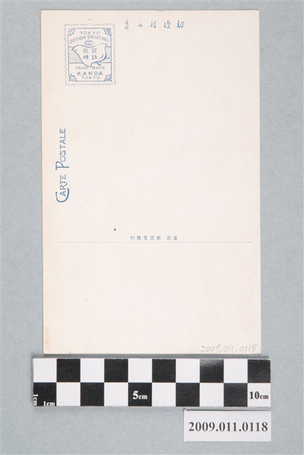 2. 明信片正面底邊印刷文字「大武山下のクワルス社 SAVAGES OF KUWANERU」(中譯:大武山下的泰武社),其中英文羅馬拼音拼錯,與日文片假名不一致,應為KUWARUSU。背面印刷文字「郵便はのき,CARTE POSTALE,臺北新高堂發行」,左上角印有一藍色郵票黏貼方框,框內有鳥類圖案,印刷文字「TOKYO DESIGN PRINTING Co.,登錄商標,TRADE MARK,KANDA TOKYO」,其餘空白。