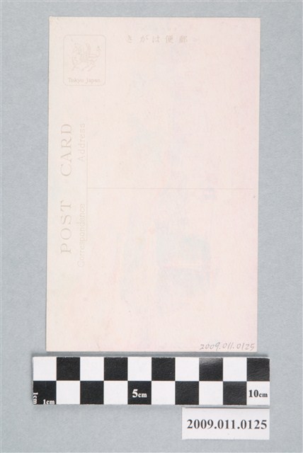 2. 明信片正面左上方印刷文字「(臺灣の蕃地風習)蕃屋と常食の蜀黍」(中譯:臺灣內地風俗 原住民家屋及主食玉米)。背面印刷文字「郵便はがき,POST CARD」,左上角郵票黏貼框內印有一隻飛馬,下有TOKYO JAPAN字樣,其餘空白。
