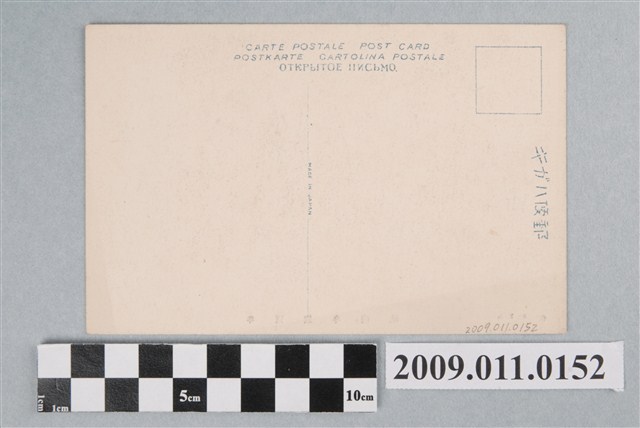 2. 明信片正面底邊印刷文字「卑南族卑南社 60 By Y.S.」。背面印刷文字「郵便ハガキ,CARTE POSTALE POST CARD POSTKARTE CARTOLINA POSTALE OTKPbITOE IIИCbMO,MADE IN JAPAN」,其餘空白。