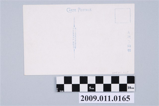 日本時代彩色印刷明信片,生蕃屋商店發行,獲得基隆要塞司令部許可第420號發行。正面圖為基隆哨船頭街義重町一段的街道景象情形,左側的「大倉商行」,是販售和洋雜貨的商店。右側高聳有著圓頂造型的磚造街屋是「岸田吳服店」。左上角說明文字:「(台灣)基隆哨船頭街 175, KEELUNG STREET, FORMOSA.」,背面印刷有「CARTE POSTALE,郵便ハガキ,基隆要塞司令部許可第四二○號,生蕃屋商店發行」等字。
