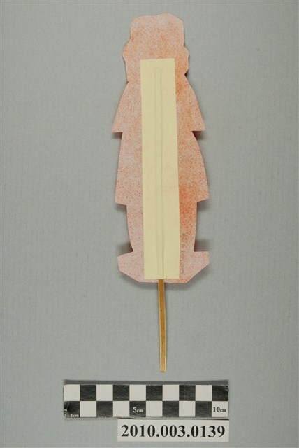本件女性替身紙像,為宜蘭市林陳阿嬌(又名阿巧)所製,頭部以墨版印製在白色紙張之上,根據外沿剪裁後,張貼於以紅紙剪裁的身軀上,背後黏上一根竹籤以利立起。替身紙像的前額做瀏海髮式,雙頰各有一洋紅圓點為腮紅,身軀外形簡略,約略顯示雙手、上衣下襬與雙腳。