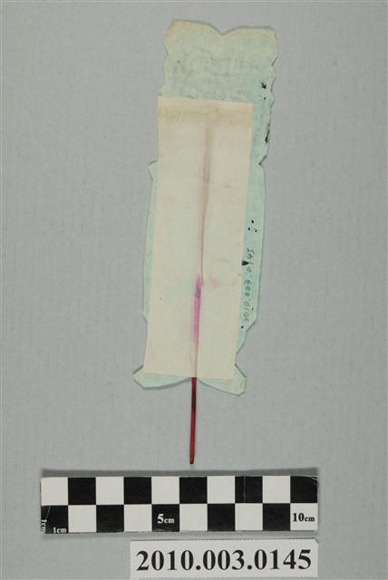 本件孩童替身作男孩面貌,紙像頭部以墨版印製在淺綠色紙張之上,只有頭部有紋樣,頭部以下僅約略剪裁出身軀與雙腳,背後黏上一根香腳以利立起。孩童替身紙像前額有圓形瀏海,頭頂兩側盤髮髻,兩側垂髮,身軀外形簡略,約略顯示雙手、上衣下襬與雙腳。據入藏來源資料,本件來自宜蘭市進安壇。