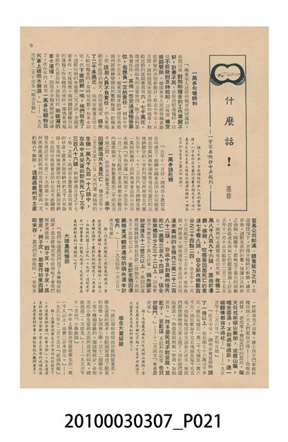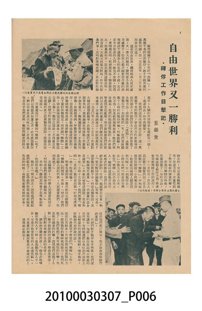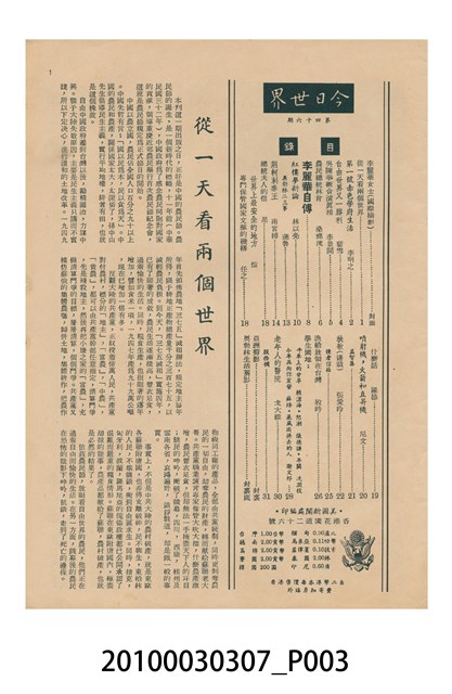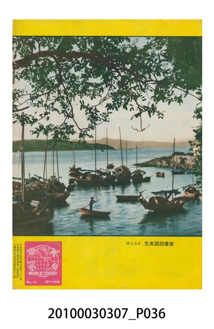 1.本物件為美國新聞處編印《今日世界》第46期,包括「第一號赤色學府生活」、「李麗華自傳」、「紅樓夢新論」、「噴射機,火箭和直昇機」、「秧歌(連載)」、「漁船放領在台灣」、「老年人的醫院」等內容。