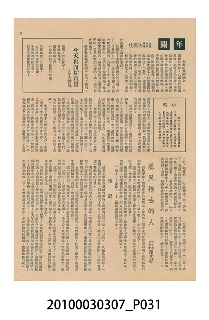 《今日世界》創刊,聲軌—台灣現代聲響文化資料庫,http://soundtraces.tw/media-publication/%E3%80%8A%E4%BB%8A%E6%97%A5%E4%B8%96%E7%95%8C%E3%80%8B%E5%89%B5%E5%88%8A/(瀏覽日期:2020/01/02)。