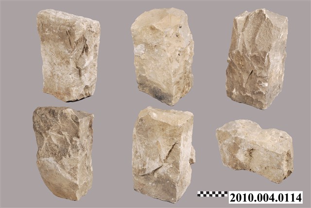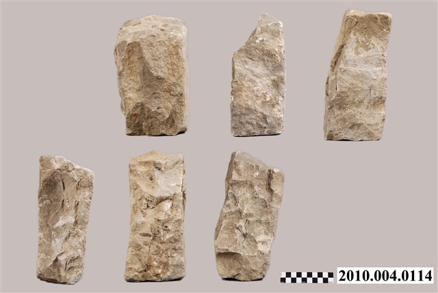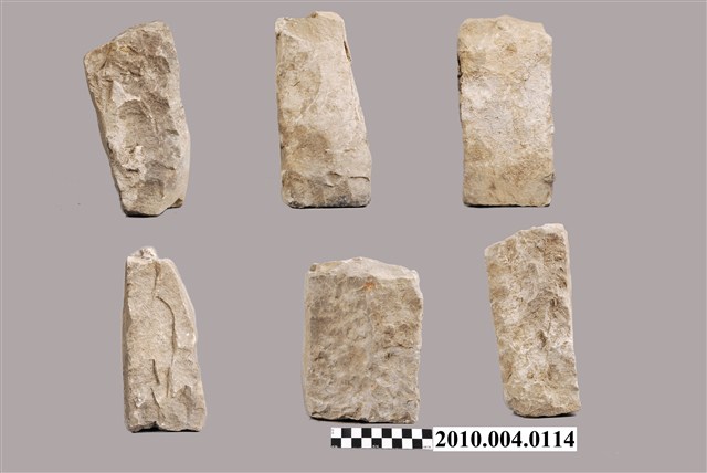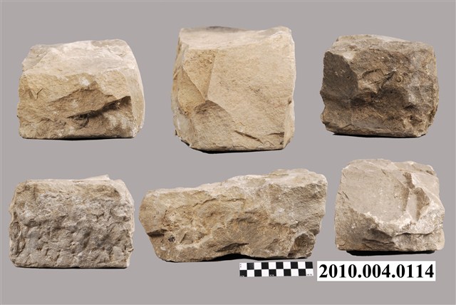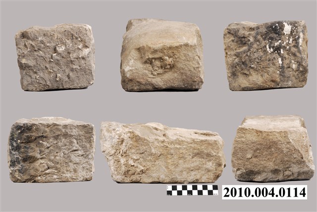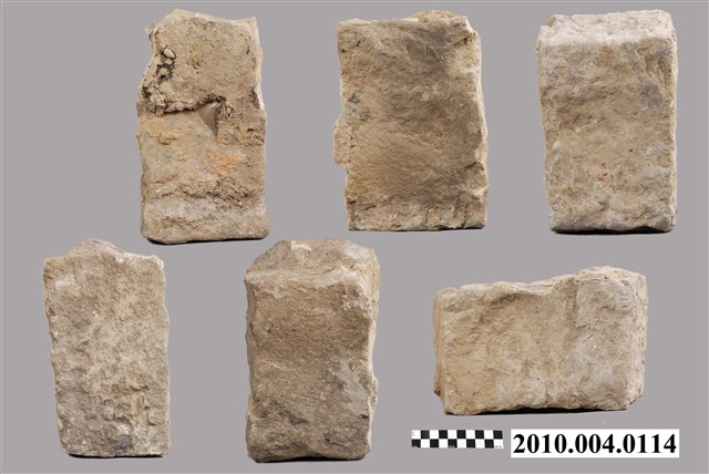 根據收藏來源資料,本文物疑為竹塹城石組,一組六件。竹塹城位於今新竹市,1828年到1829年改建為磚石城牆,城牆位置在今東門街、西門街、南門街、北門街。日本時代1906年起進行市區改正,將城牆陸續拆除成道路,城牆的磚石則用以築設下水道或作道路底面。本文物是位於北門街鄭用錫進士第前下水道邊的石塊。