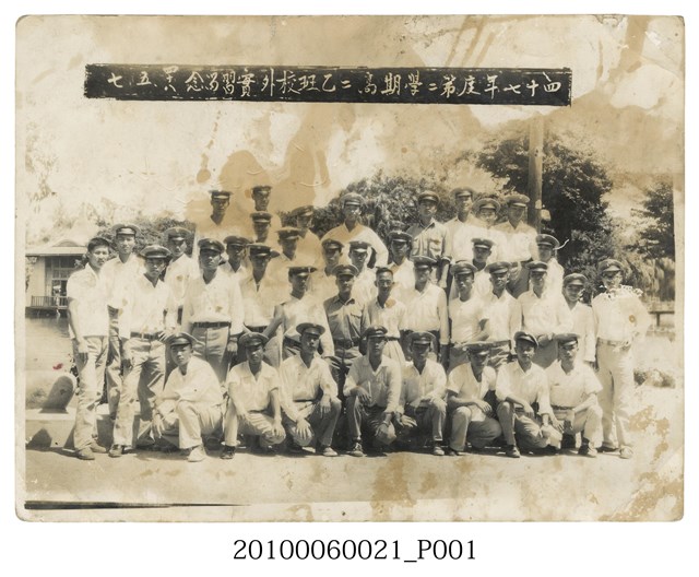 本件為臺灣省立臺中第一中學校(今臺中市立臺中第一高級中等學校)外實習紀念照,拍攝時間為民國48年(1959)5月7日,照片上方印有「四十七年度第二學期高二乙班校外實習留念」、「四十八、五、七」字樣,拍攝地點推測為臺中公園湖心亭前。