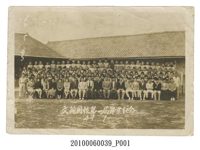 本件為苗栗縣苑裡鎮文苑國民學校(今苗栗縣文苑國民小學)第1屆畢業紀念照,拍攝時間為民國49年(1960)7月。
