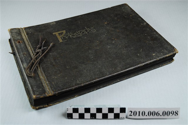 此件為1940-1960年代相簿,內有67張黑白照片,照片以黏貼方式呈現,時間斷限涵蓋日治後期至戰後初期,照片主題包括:日治時期臺南州朴子東國民學校(今嘉義縣朴子市朴子國民小學)、臺南州東後寮國民學校(今嘉義縣義竹鄉光榮國民小學)、戰後初期嘉義縣榮國民學校(今嘉義縣光榮國民小學)等校園照片,以及金門八二三砲戰、金門太武山、旅遊照片、歡送普明燈居士留影等主題。