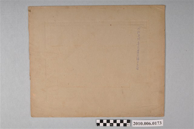 1.本物件為一張黑白照片,是一間以竹子、紙等材質製成的紙紮屋,為新式兩層樓住宅中西合璧,一樓採傳統中式建築,二樓類似日治時期的西式建屋形式,牌樓上有寫上「金玉滿堂」等吉祥話,房屋上也有假人。整體房屋形式華麗。照片下有襯紙墊著,但襯紙和照片本身皆有水漬,保存狀況不佳,背面有以原子筆寫上「昭和年間喪家靈屋購自高雄」。