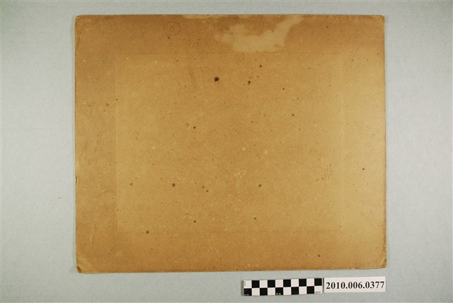 1.本物件是一張黑白照片,是周氏家族之合照,根據背景推斷,應該是在自宅的大廳前面合照,可從住宅的裝飾推斷應為大戶人家。照片中總共有9個人,左邊四位女性皆為穿著淺色上衣,黑色馬面裙,正中間的女性穿著有點類似旗袍的樣式,根據位置推斷應為家中地位最高者,右邊四位皆為男性,皆穿深色上衣及馬面裙,後方對聯寫著「西庚献瑞家庭和氣致祥,北關承恩祖父文風餘澤」。照片背面則有襯紙保護,襯紙背面有些褪色。