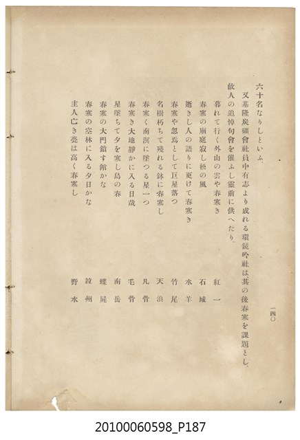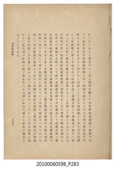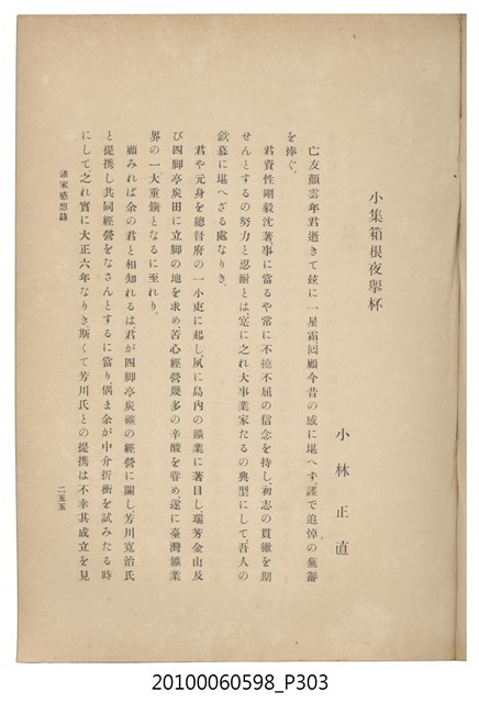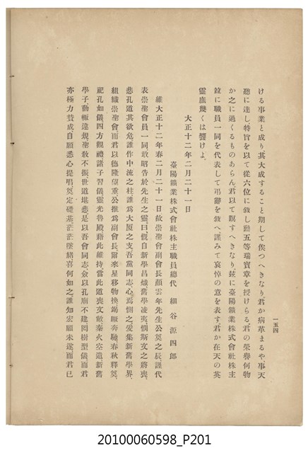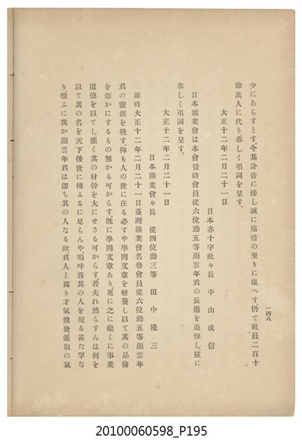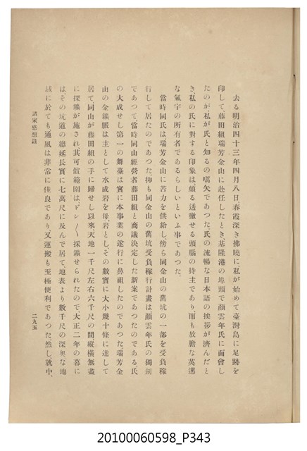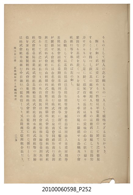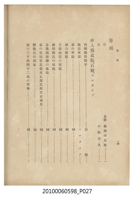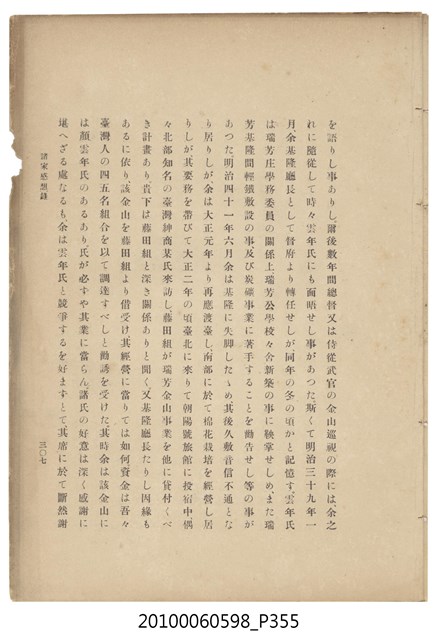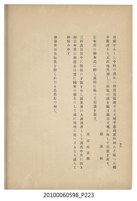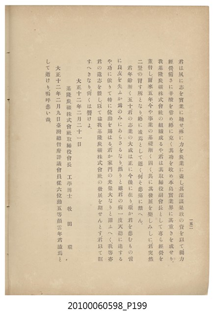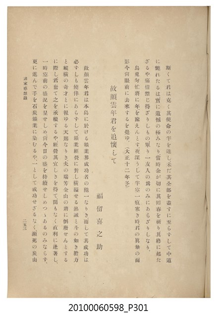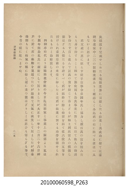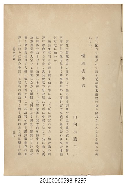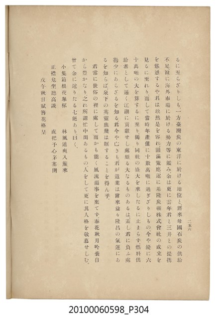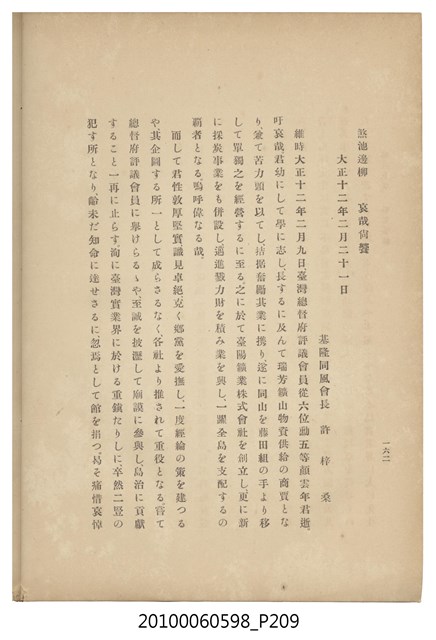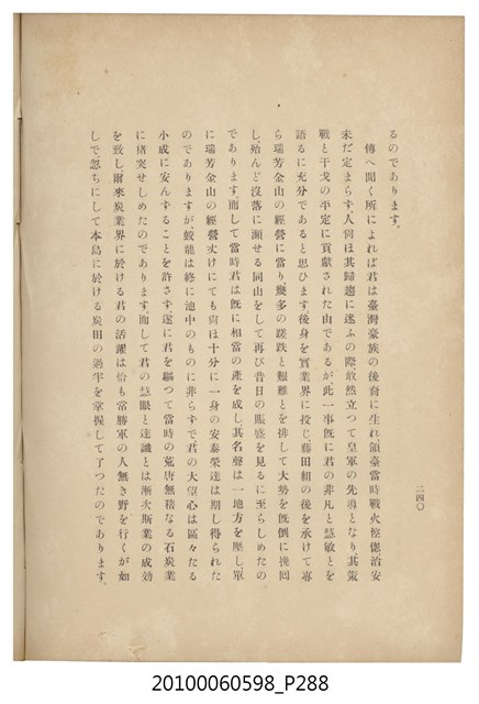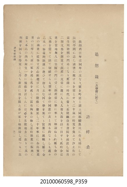 臺灣五大家族之基隆顏家及顏雲年不同年齡照片,及基隆炭礦株式會社創立○陽公司控煤各式照片四十張,及顏雲年弔儀式場案內,內容大致如臺灣礦業發展史,由友聲會編纂,介紹顏雲年翁的一生。