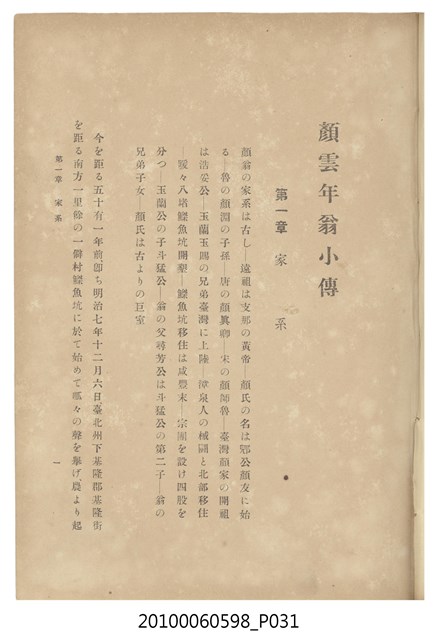 書籍- 顏雲年翁小傳