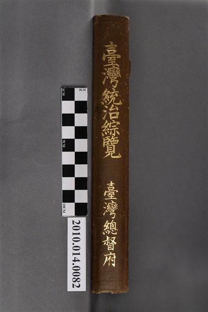 此為一紙質書籍,題名為《臺灣統治綜覽》,由臺灣總督府於1908年10月出版。 此書內容為對臺灣的一系列介紹,包含地勢、氣象、人種、戶口、行政、司法、軍事、警察、衛生、財政、建設、產業、專賣事業、交通、貿易、教育、宗教、彩票等各項台灣事務的概述,為臺灣總督府對臺灣統治的成績單。 此書反映日本盡力治理臺灣的狀況,日本對臺灣治理之重視,原因在於日本「南進論」的對外擴張論述。日本的對外侵略理論始於江戶幕府末年,當時被捕入獄的著名學者吉田松陰為因應西力東漸,提出「北割滿州之地,南收臺灣」的侵略思想以富國強兵,並影響其門下弟子高杉晉作、木戶孝允、伊藤博文、山縣有朋這些明治政府重臣。二戰前日本對歐亞大陸侵略的「北進論」與東南亞侵略的「南進論」兩者互有競爭,後在1941年4月日本與蘇聯簽訂互不侵犯條約,以及為獲得東南亞的資源,導致「南進論」成為日本的主要擴張策略(葉碧苓。2007。15-18)。